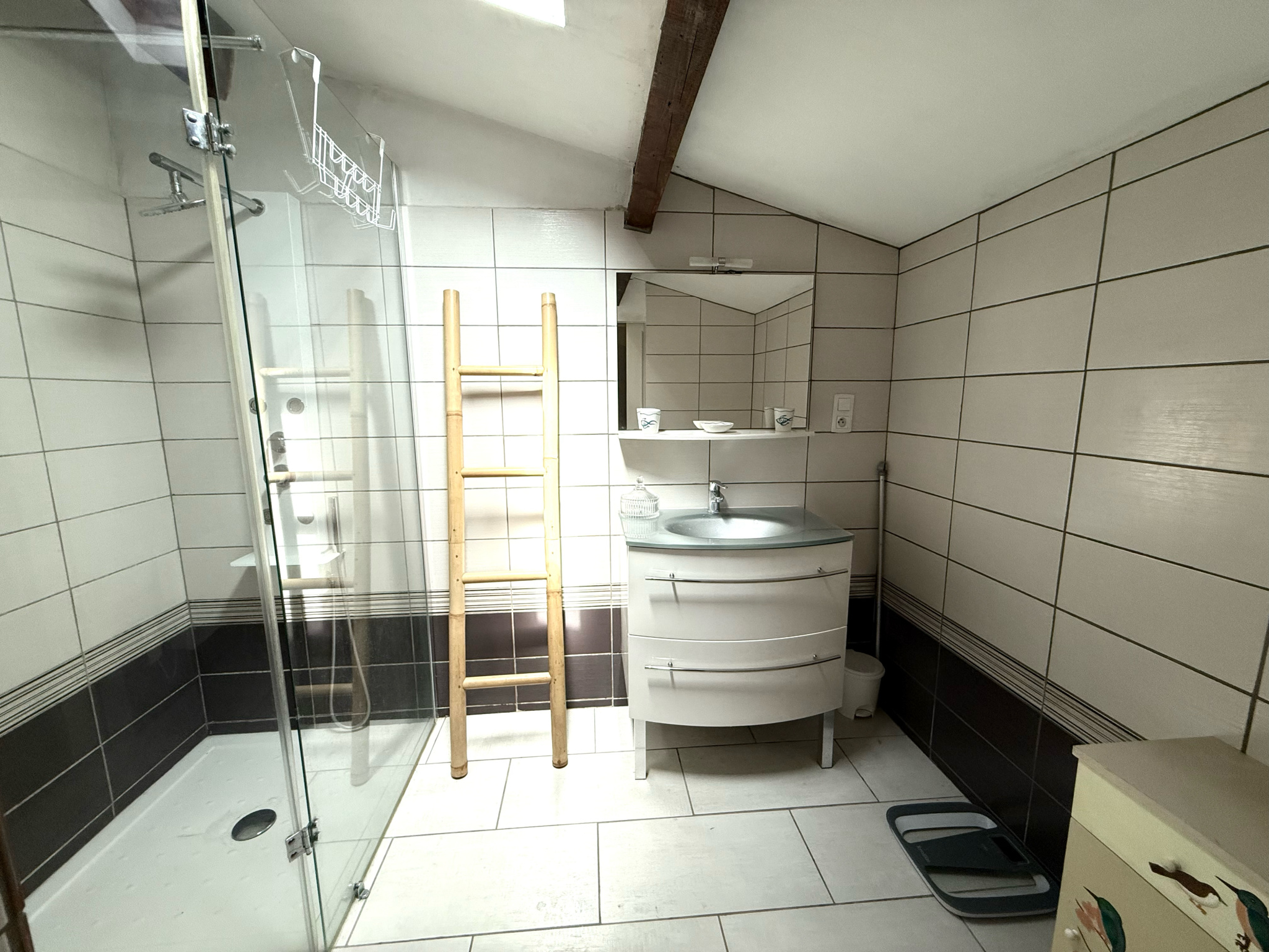 A l'étage, la 4ème chambre, salle d'eau, un wc séparé et un dressing, une mezzanine, ainsi que plus de 30 m2 supplémentaires d'espaces de rangements mansardés.